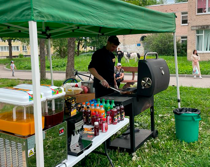 Первая точка была открыта в деревне Лопухинка Ломоносовского района Ленинградской области. Население - около 2000 человек. Фудтрак стоит на трассе, основной трафик - проезжающий: дачники, рабочие, местные жители.